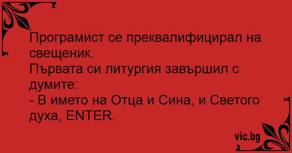 Програмист се преквалифицирал на свещеник.