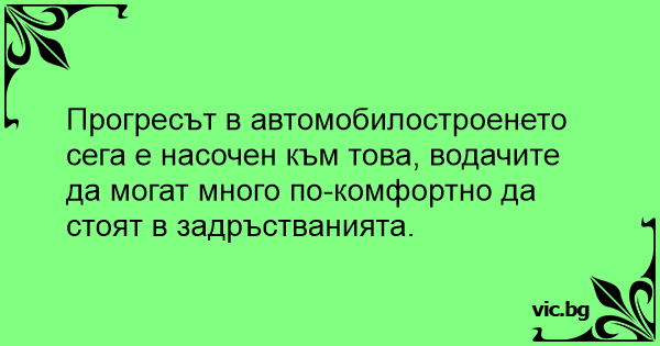 Прогресът в автомобилостроенето сега е насочен към това, водачите да могат много по-комфортно да стоят в задръстванията.