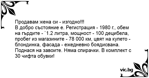 Продавам жена си - изгодно!!!