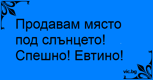 Продавам място под слънцето!