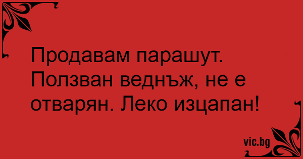 I'm selling a parachute - just as new, used only one time, didn't open once.
