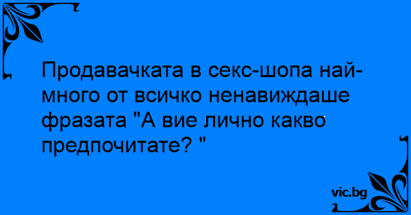 Продавачката в cekc-шопа най-много от всичко ненавиждаше фразата "А вие лично какво предпочитате? "