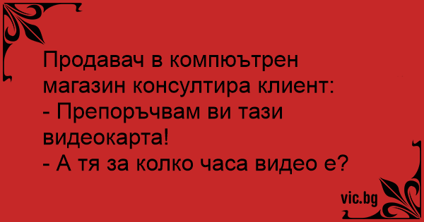 • Вицове от Facebook от нашата страница https://www.facebook.com/www.vic.bg