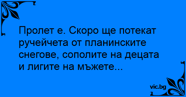 Пролет е. Скоро ще потекат ручейчета от планинските снегове, сополите на децата и лигите на мъжете...