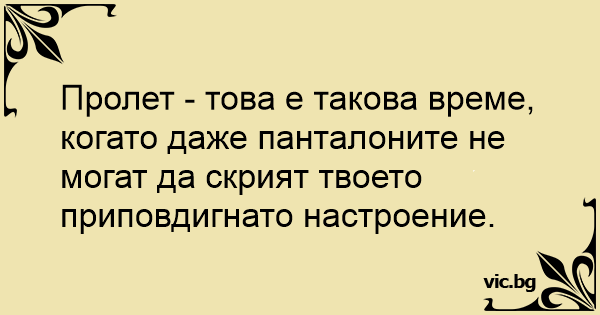 Пролет - това е такова време, когато даже панталоните не могат да скрият твоето приповдигнато настроение.