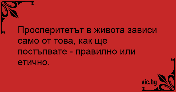 Просперитетът в живота зависи само от това, как ще постъпвате - правилно или етично.
