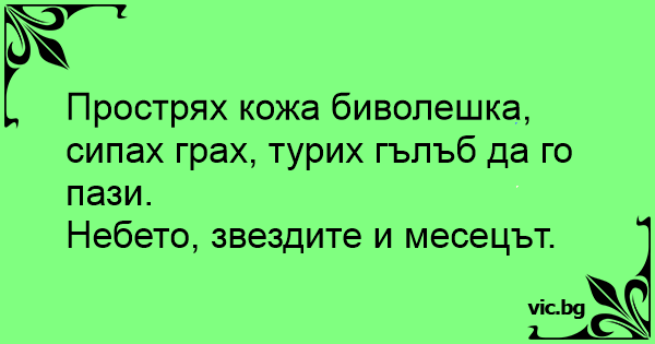 Прострях кожа биволешка, сипах грах, турих гълъб да го пази.