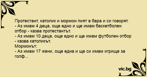 В бара протестант, католик и мормон пият и лафят на спортни теми.