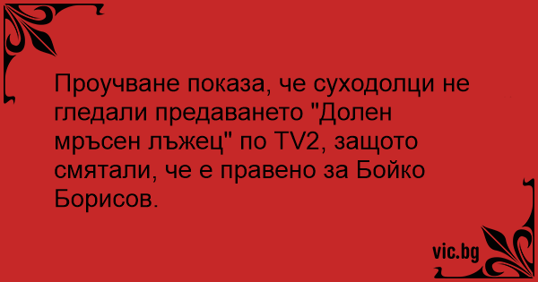 Проучване показа, че суходолци не гледали предаването "Долен мръсен лъжец" по ТV2, защото смятали, че е правено за Бойко Борисов.