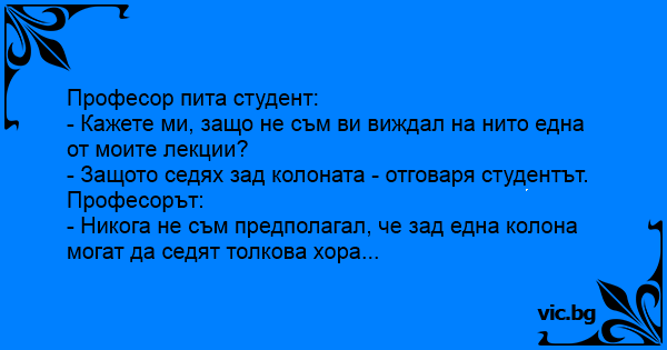 - Защото седях зад колоната - отговаря студентът.