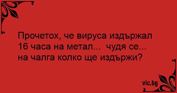 Прочетох, че вируса издържал 16 часа на метал... чудя се... на чалга колко ще издържи?