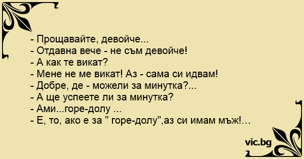 - Е, то, ако е за " горе-долу",аз си имам мъж!…