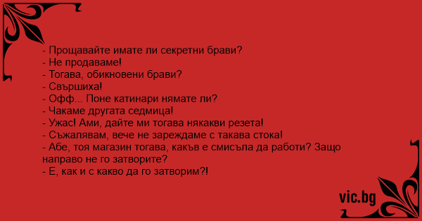 - Прощавайте имате ли секретни брави?