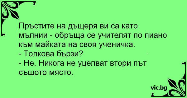 Пръстите на дъщеря ви са като мълнии - обръща се учителят по пиано към майката на своя ученичка.