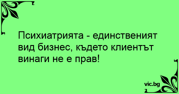 Психиатрията - единственият вид бизнес, където клиентът винаги не е прав!