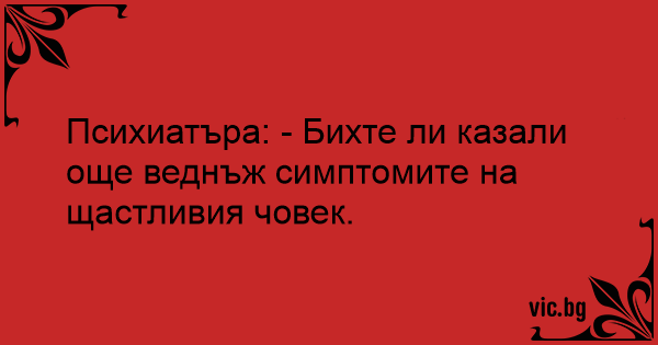 Психиатъра: - Бихте ли казали още веднъж симптомите на щастливия човек.