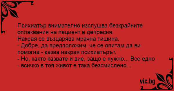 - Добре, да предположим, че се опитам да ви помогна - казва накрая психиатърът.