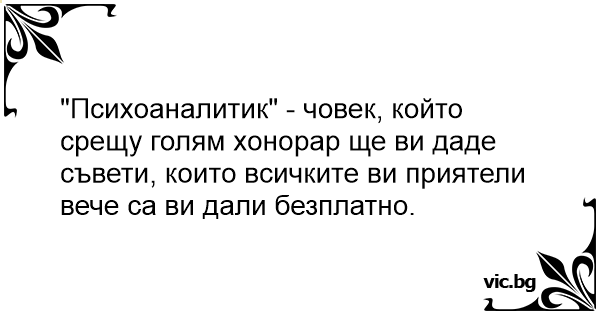 "Психоаналитик" - човек, който срещу голям хонорар ще ви даде съвети, които всичките ви приятели вече са ви дали безплатно.