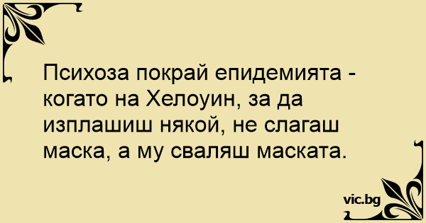 Психоза покрай епидемията - когато на Хелоуин, за да изплашиш някой, не слагаш маска, а му сваляш маската.