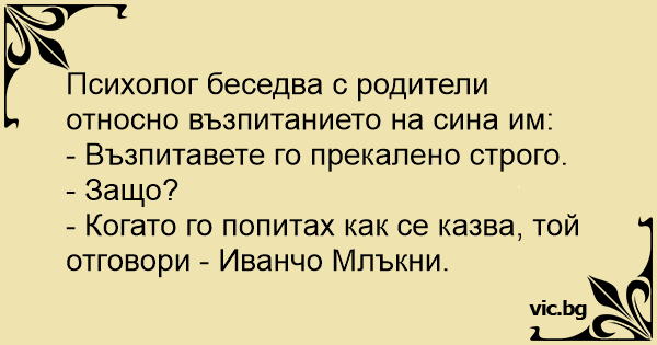 - Когато го попитах как се казва, той отговори - Иванчо Млъкни.