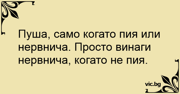 Пуша, само когато пия или нервнича. Просто винаги нервнича, когато не пия.