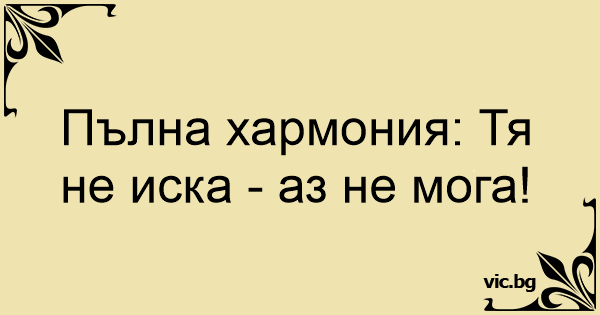 Пълна хармония: Тя не иска - аз не мога!