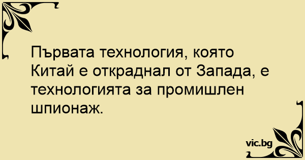 Първата технология, която Китай е откраднал от Запада, е технологията за промишлен шпионаж.