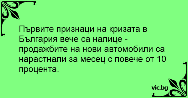 Първите признаци на кризата в България вече са налице - продажбите на нови автомобили са нарастнали за месец с повече от 10 процента.