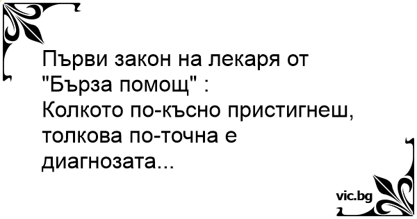 Първи закон на лекаря от "Бърза помощ" :