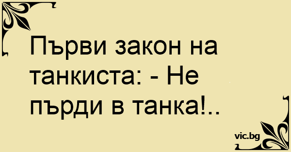 Първи закон на танкиста: - Не пърди в танка!..