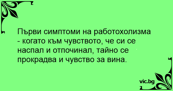 Първи симптоми на работохолизма - когато към чувството, че си се наспал и отпочинал, тайно се прокрадва и чувство за вина.