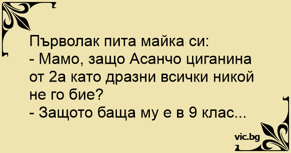 - Мамо, защо Асанчо циганина от 2а като дразни всички никой не го бие?