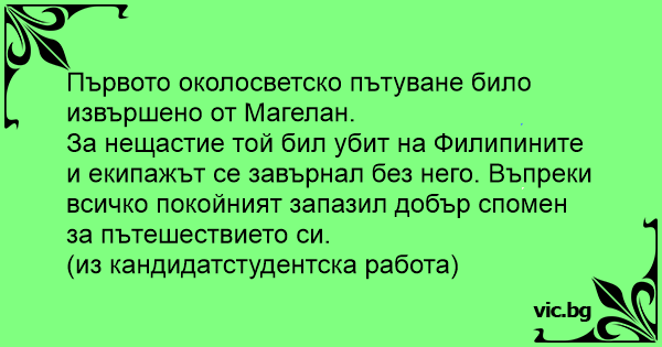 Първото околосветско пътуване било извършено от Магелан.