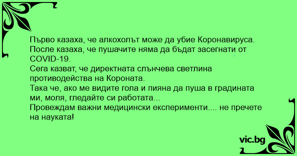 Първо казаха, че алкохолът може да убие Коронавируса.