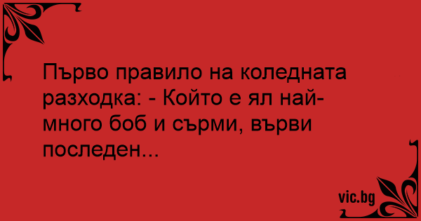 Първо правило на коледната разходка: - Който е ял най-много боб и сърми, върви последен...