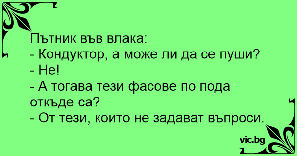 • Вицове от Facebook от нашата страница https://www.facebook.com/www.vic.bg