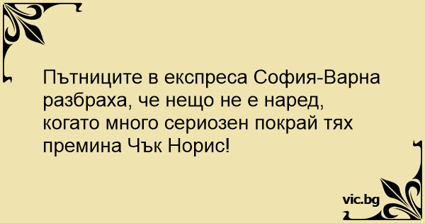 Пътниците в експреса София-Варна разбраха, че нещо не е наред, когато много сериозен покрай тях премина Чък Норис!