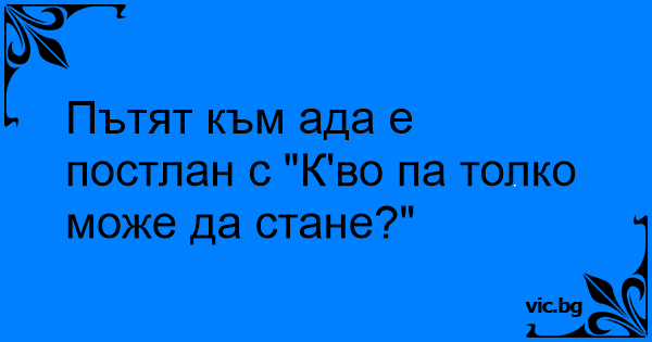 Пътят към ада е постлан с "К'во па толко може да стане?"