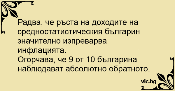 Радва, че ръста на доходите на средностатистическия българин значително изпреварва инфлацията.