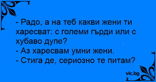 - Радо, а на теб какви жени...