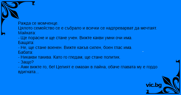 • Вицове от Facebook от нашата страница https://www.facebook.com/www.vic.bg