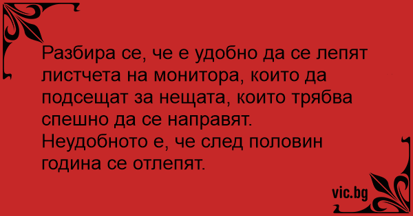 Разбира се, че е удобно да се лепят листчета на монитора, които да подсещат за нещата, които трябва спешно да се направят.