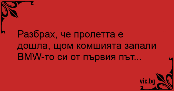 Разбрах, че пролетта е дошла, щом комшията запали BMW-то си от първия път...