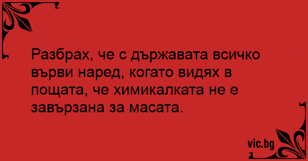 Разбрах, че с държавата всичко върви наред, когато видях в пощата, че химикалката не е завързана за масата.