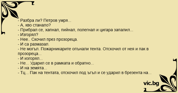 - Разбра ли? Петров умря...