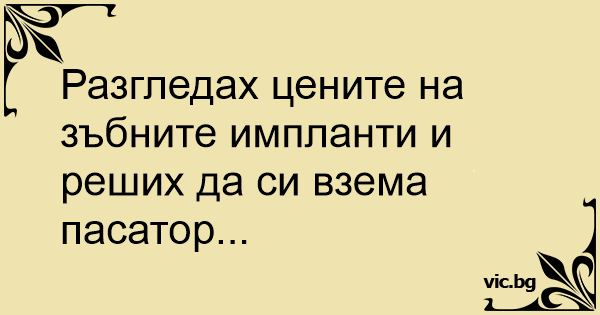 Разгледах цените на зъбните импланти и реших да си взема пасатор...