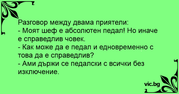 - Моят шеф е абсолютен пeдaл! Но иначе е справедлив човек.