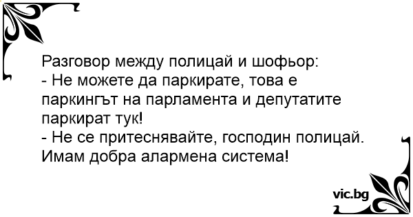 - Не се притеснявайте, господин полицай. Имам добра алармена система!