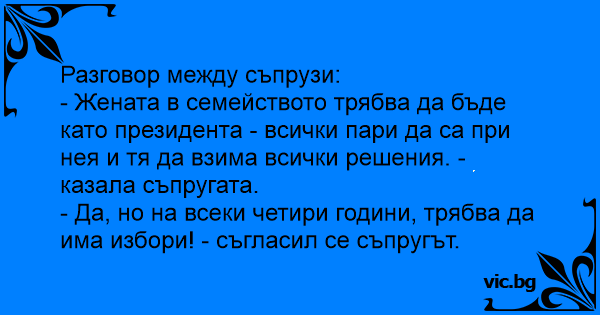 - Да, но на всеки четири години, трябва да има избори! - съгласил се съпругът.