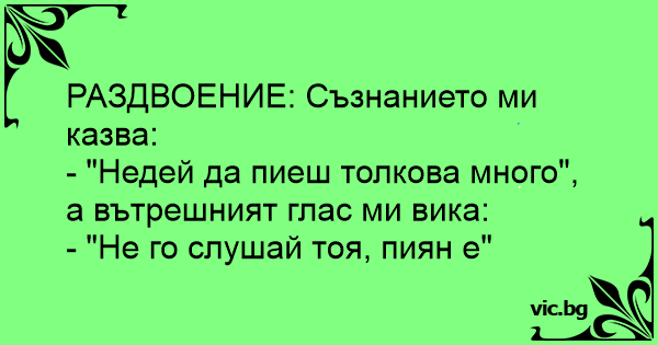 - "Недей да пиеш толкова много", а вътрешният глас ми вика: